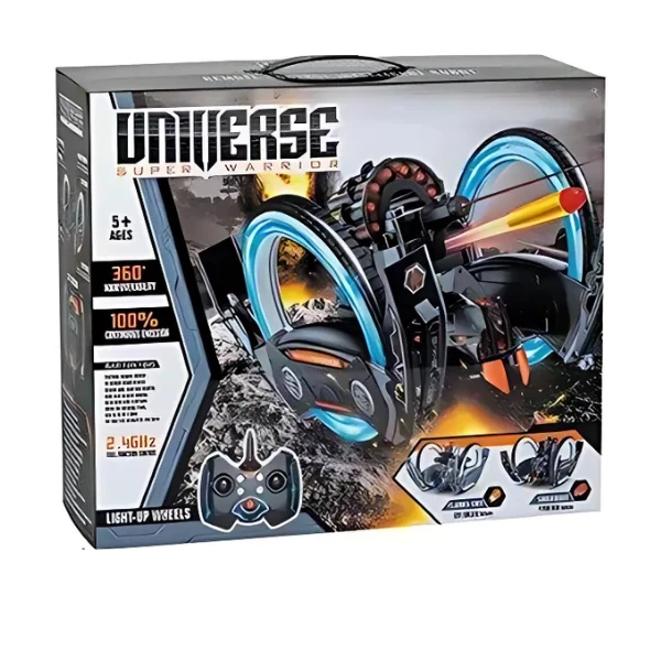 "Super-Războinic al Universului" este o mașină de luptă telecomandată, echipată cu un vizor laser și un tun.