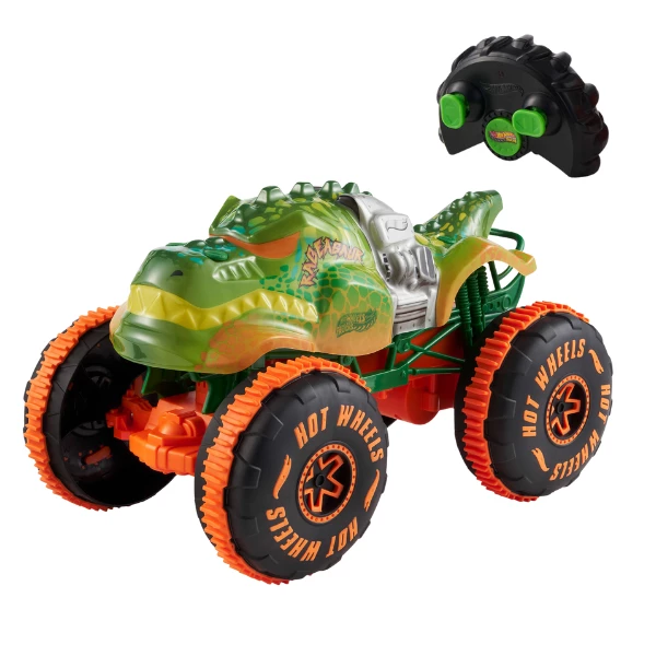 Mașina off-road cu telecomandă Hot Wheels Monster Trucks „Rageasaur", la scară 1:15, este un adevărat monstru pe roți, pregătit pentru coliziuni și distrugeri epice! Jucăria are roți mari Grip Action, care oferă aderență excelentă pe orice suprafață, atât în interior, cât și în exterior.