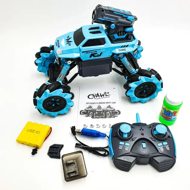 Modelul „CRAWL” este o jucărie 4x4 extrem de distractivă pentru copii! Cu design robust, suspensii puternice, roți tip șenilă și posibilitatea de a glisa în orice direcție, acest jeep off-road oferă manevre spectaculoase și rotire 360°. Atracția principală: trage cu baloane de săpun din tunul montat pe caroserie! 🚀