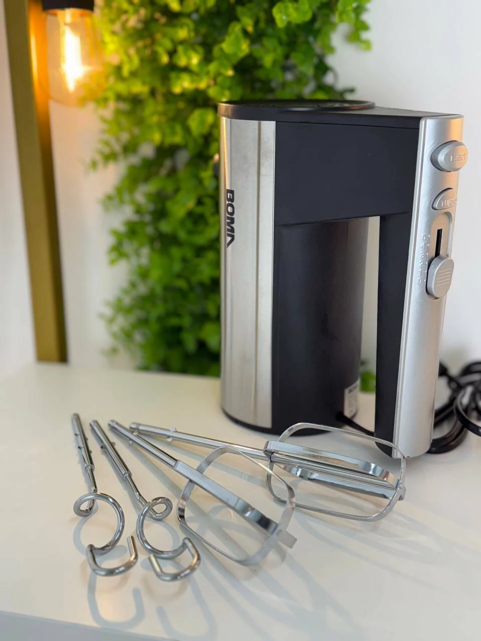 Designul ergonomic și baza de depozitare integrată fac ca mixerul BOMA să fie ușor de folosit și de păstrat, ocupând spațiu minim în bucătărie.