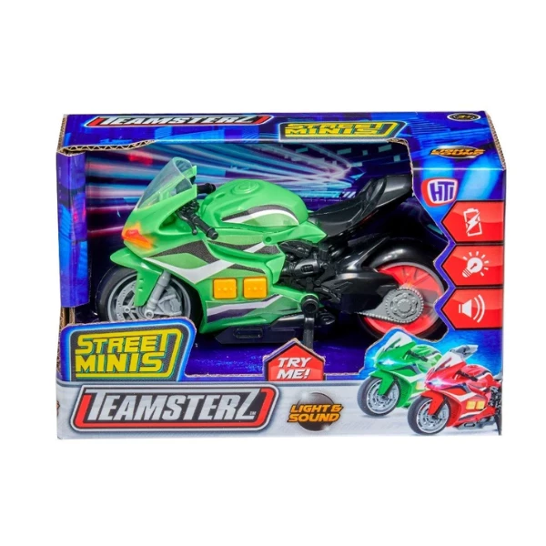 Motocicleta Teamsterz Street Minis cu efecte luminoase și sonore este o jucărie captivantă pentru copiii de peste 3 ani, care transformă jocul obișnuit într-o aventură palpitantă. Copilul poate conduce mini-motocicleta acasă sau în curte, dezvoltând imaginația și motricitatea.