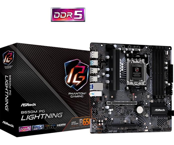 Placă de bază ASRock B650M PG LIGHTNING, AM5, AMD B650, Micro-ATX