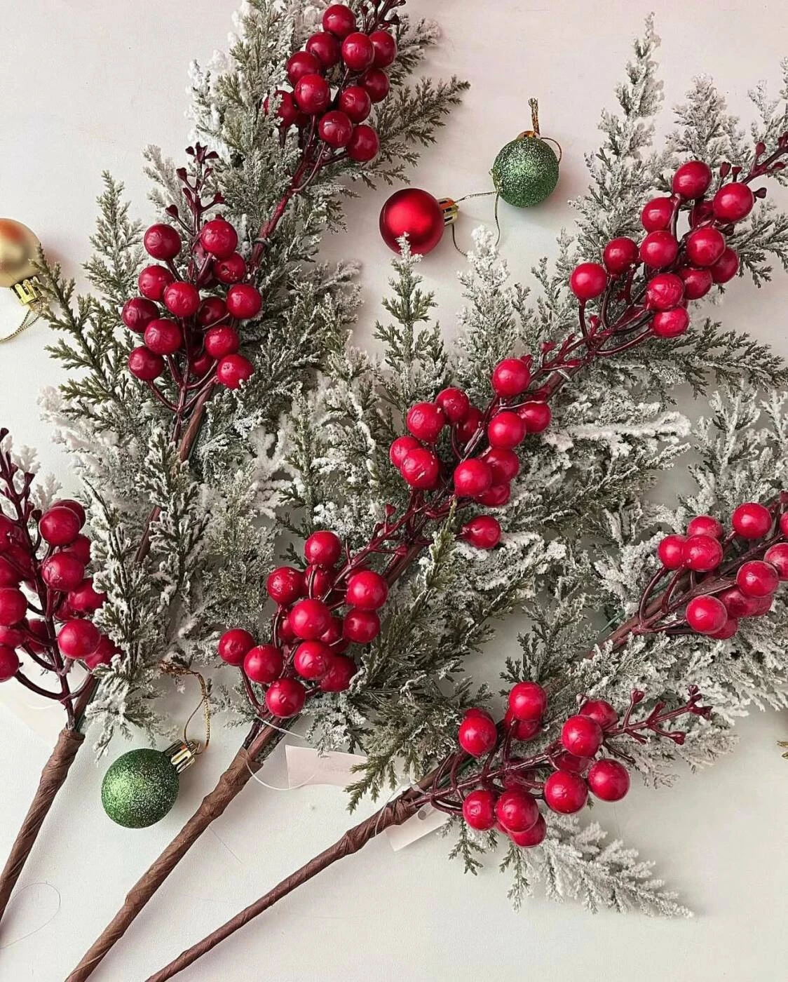 Această ramură aduce un plus de culoare și rafinament oricărui spațiu, fiind perfectă pentru decorarea bradului, a meselor festive, a vazei de iarnă sau a aranjamentelor handma ...