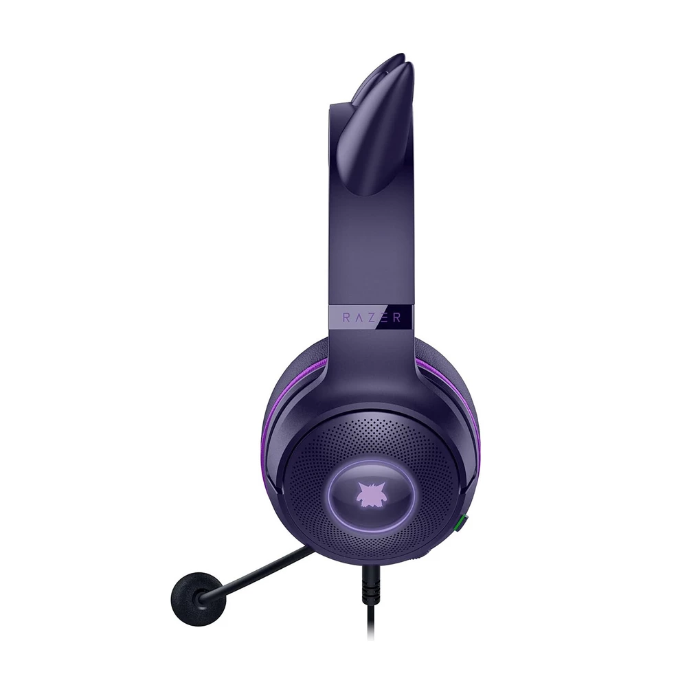 Kraken Kitty V2 Gengar dispune si de iluminare Razer Chroma RGB integrata in cupe, care permite personalizarea vizuala printr-o paleta vasta de culori si efecte sincronizabile cu alte dispozitive compatibile Razer. Designul cu urechi de pisica iluminate adauga un plus de expresivitate si originalitate, transformand castile intr-un accesoriu iconic pentru fanii Pokemon si pentru creatorii de continut.