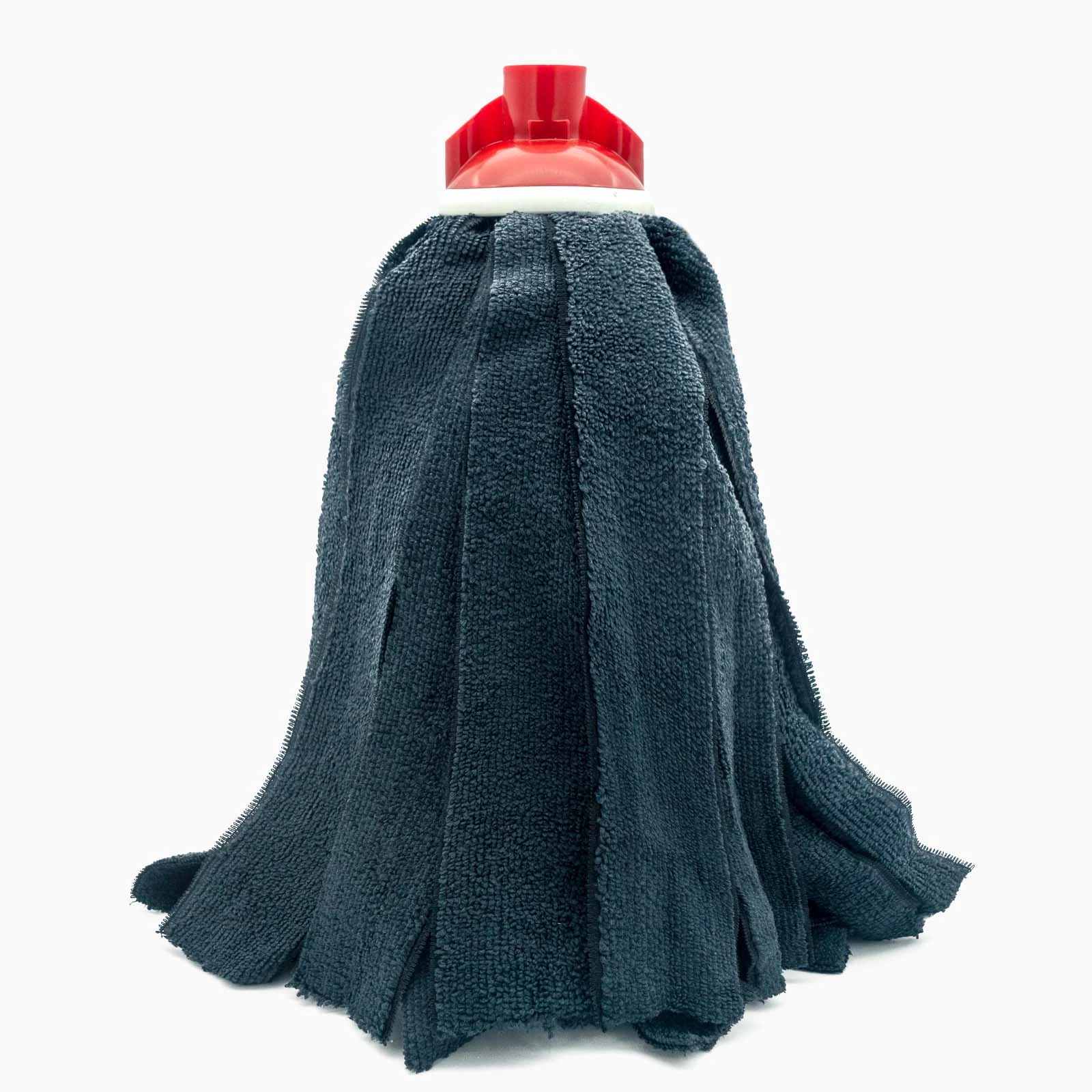 Mop cu benzi negre din microfibră, rezistent oricărui tip de detergent, ușor de folosit, ce asigură o absorbție FOARTE ridicată.Protectie CAUCIUCATA in jurul capului de plastic impotriva zgarieturilor.nu se decolorează;curăță ușor, fără să lase urme;filet conic din plastic ce se adaptează oricărui tip de mâner.