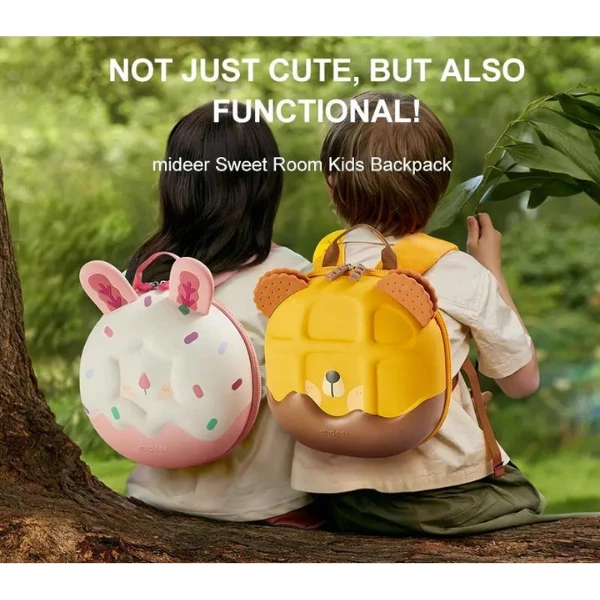 Rucsacul este o combinație minunată de animale drăgălașe și dulciuri. Este spațios și rezistent, durabil și greu de deformat. Curea de piept în formă de H ajută la distribuirea orizontală a greutății. Rucsacul are un strat excelent impermeabil, astfel că nu trebuie să vă temeți de ploaie. Controlul strict al calității asigură satisfacerea nevoilor copiilor. Bretelele groase și moi sunt confortabile și respirabile, prevenind durerile de spate. Este un rucsac mic, dar foarte spațios.