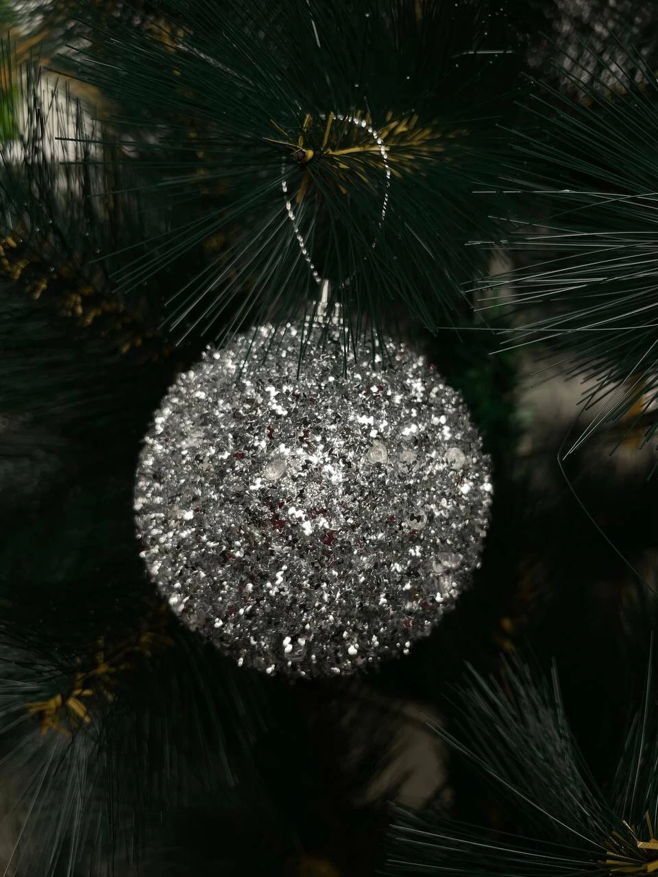 Acest set de trei globuri decorative argintii aduce un plus de eleganță și luminozitate oricărui brad de Crăciun. Fiecare glob este acoperit uniform cu paiete fine, oferind un efect strălucitor intens, perfect pentru decorurile moderne sau clasice de sărbători.