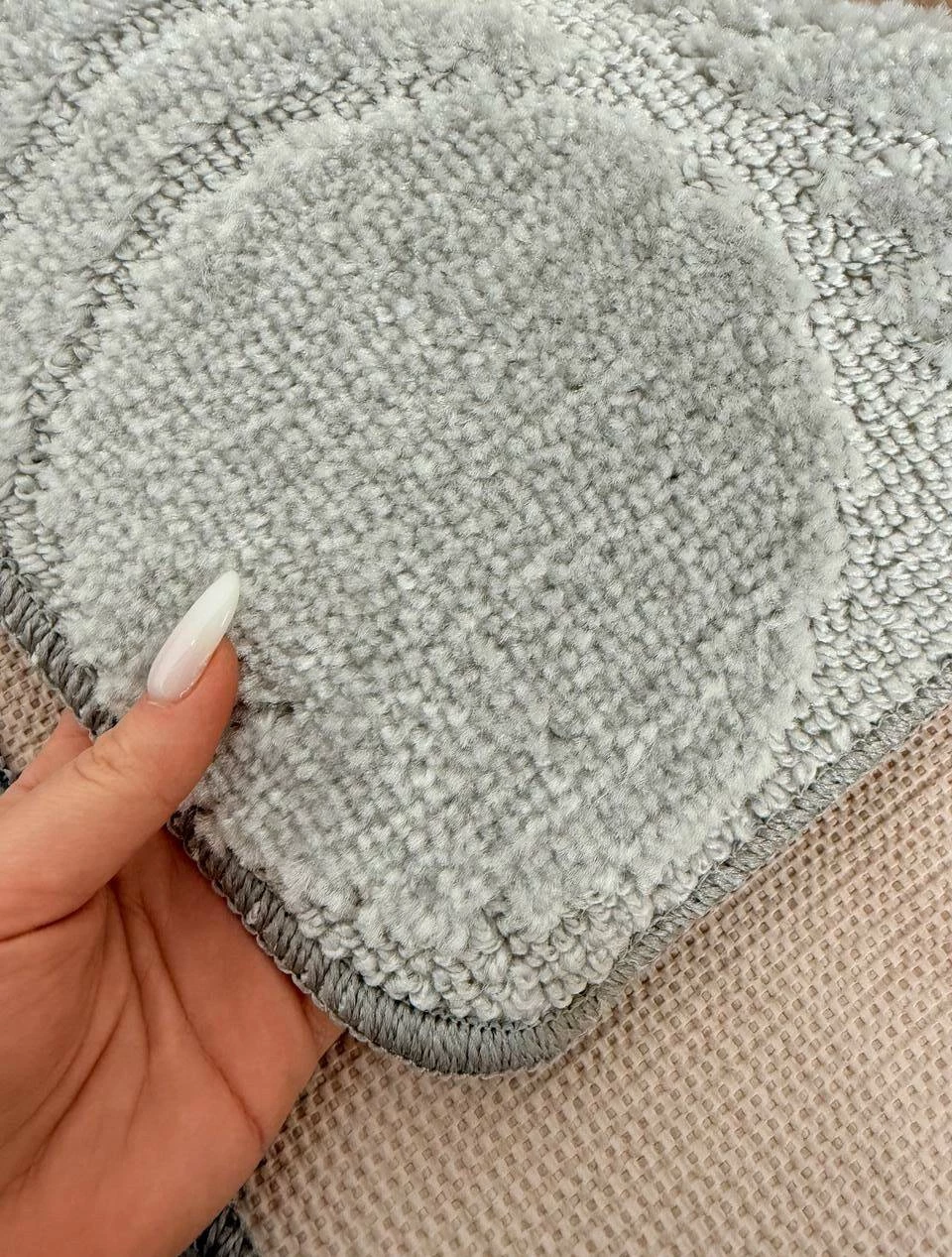 Designul modern în nuanțe de gri degradé se potrivește perfect cu orice stil de baie, de la clasic la contemporan. Partea inferioară este prevăzută cu un strat antiderapant (non-slip pad), care asigură stabilitate maximă și previne alunecările pe suprafețe umede. Covorașele își păstrează forma și culoarea chiar și după spălări repetate, fiind ideale pentru utilizare zilnică.