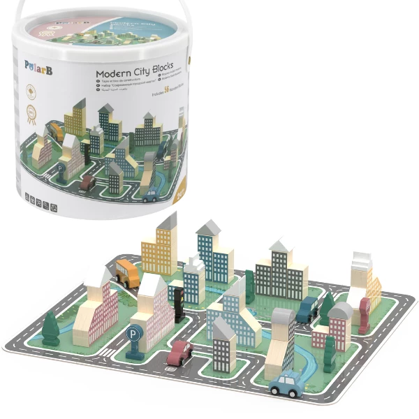 Tinerii arhitecți vor putea da frâu liber imaginației și își vor proiecta propriul oraș. Cu un astfel de set de construcție din lemn, copilul nu doar asamblează ceva după o diagramă, ci își întruchipează propriile idei de construcție. Copiii înșiși decid cum să proiecteze cel mai bine un oraș pentru a aranja armonios zgârie-nori, copaci, mașini și pentru a distribui uniform clădirile în spațiu. Astfel de jucării din lemn dezvoltă abilitățile de proiectare, rezolvarea problemelor, abilitățile motorii ale mâinii, imaginația creativă, gândirea spațială și ingeniozitatea. Setul este potrivit pentru jocurile de rol, promoveaza comunicarea si socializarea copiilor.Setul de joaca din lemn Viga Toys PolarB City este realizat din lemn slefuit fin si acoperit cu vopsele inofensive in conformitate cu standardele de jucarii pentru copii EN71 si ASTM. Este sigur pentru sănătate și excelent chiar și pentru cei mai tineri exploratori.