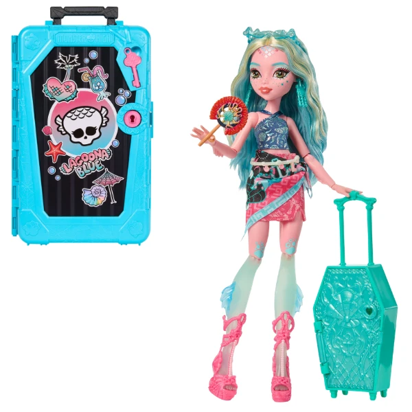 Păpușa Monster High® Skulltimate Secrets™ Lagoona Blue™ Oasis este un set de joacă tip surpriză, cu tematică de vacanță și multe accesorii ascunse. Setul include păpușa Lagoona Blue, o valiză și peste 19 surprize care se descoperă treptat cu ajutorul cheilor.