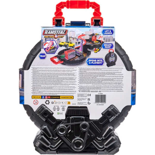 Teamsterz Metro City Packaway Wheel Playset este un set de joacă captivant, care se pliază într-o carcasă compactă în formă de roată! Cadoul perfect pentru micii pasionați de mașini, care stimulează imaginația, motricitatea fină și abilitățile cognitive.