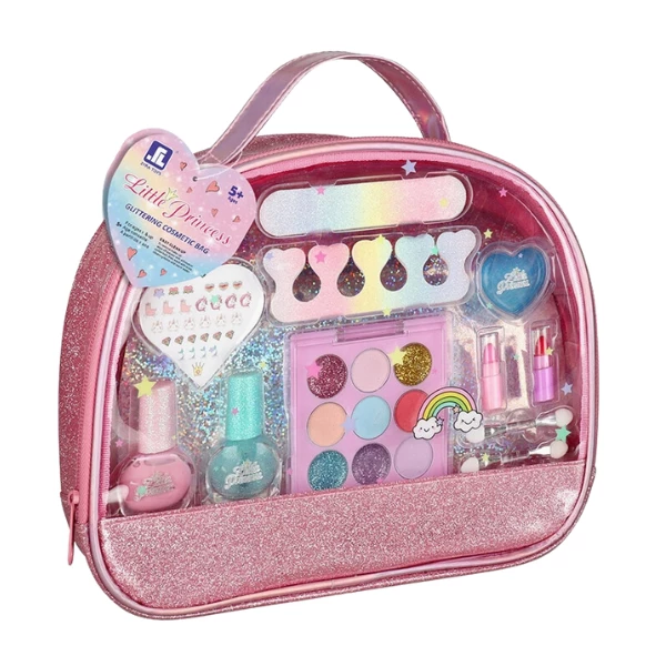 Setul de machiaj "Mica Prințesă" este perfect pentru micile domnișoare care visează să experimenteze rolul unui adevărat artist de machiaj. Într-o gentuță elegantă de machiaj, se găsesc toate accesoriile necesare pentru a crea un machiaj strălucitor și sigur: farduri de pleoape din plastic, ruj, luciu de buze și alte elemente pentru un look deosebit. Setul este realizat din materiale sigure, potrivite pentru copii, și le oferă ocazia de a-și dezvolta imaginația, creativitatea și simțul stilului. Dimensiunea practică a gentuței permite ca aceasta să fie luată la plimbări sau călătorii.