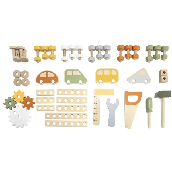 Caracteristici:✔ Atelier complet cu unelte: ciocan, cheie, șurubelniță, roți dințate, cuie și șuruburi