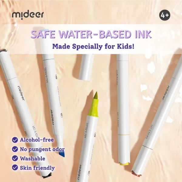Sigur pentru copii: fără alcool, fără miros, se spală ușor de pe piele și majoritatea suprafețelor.