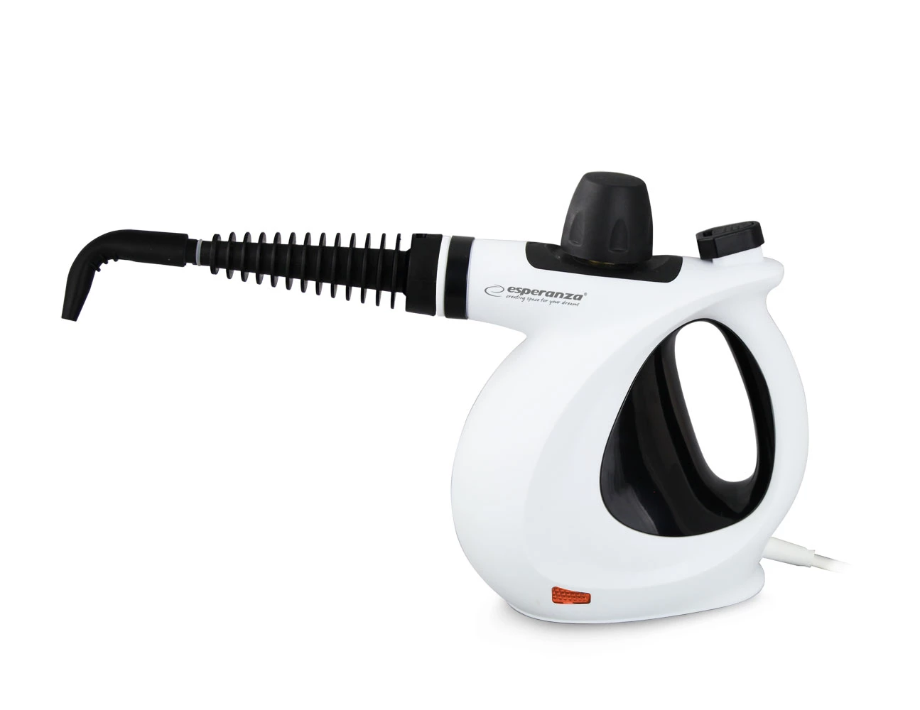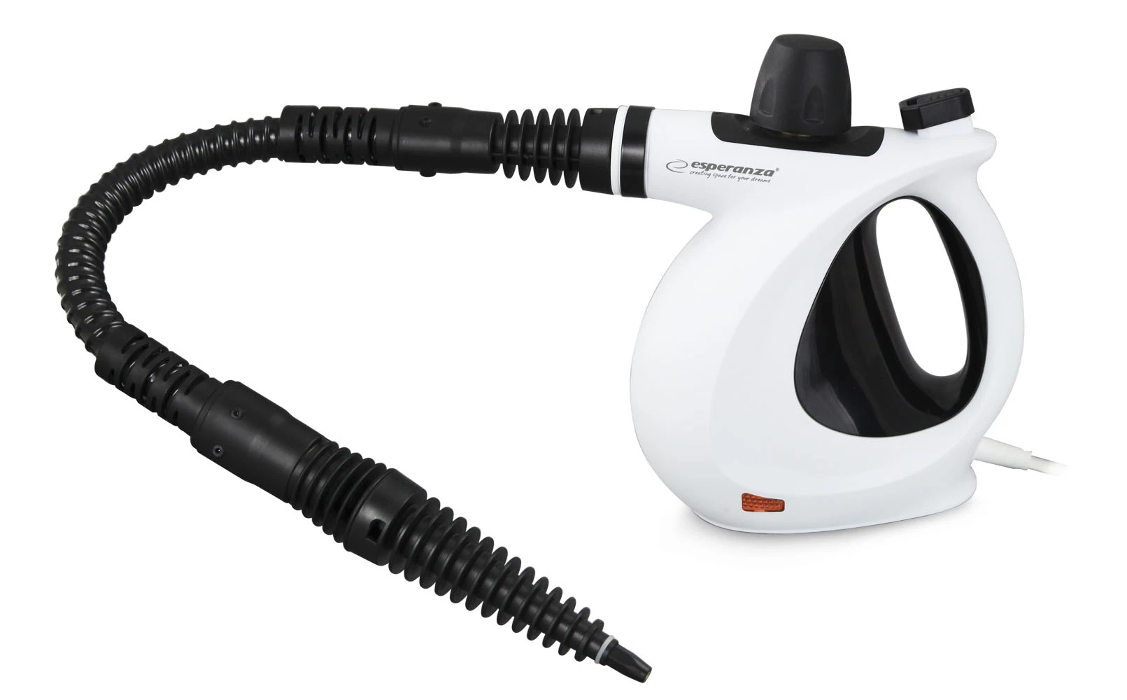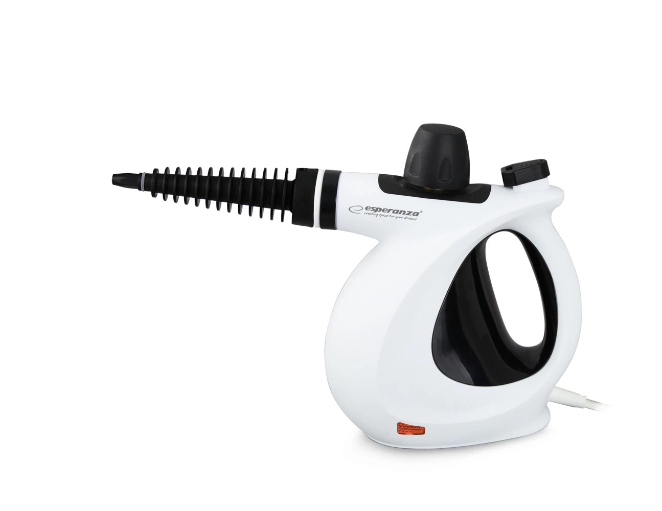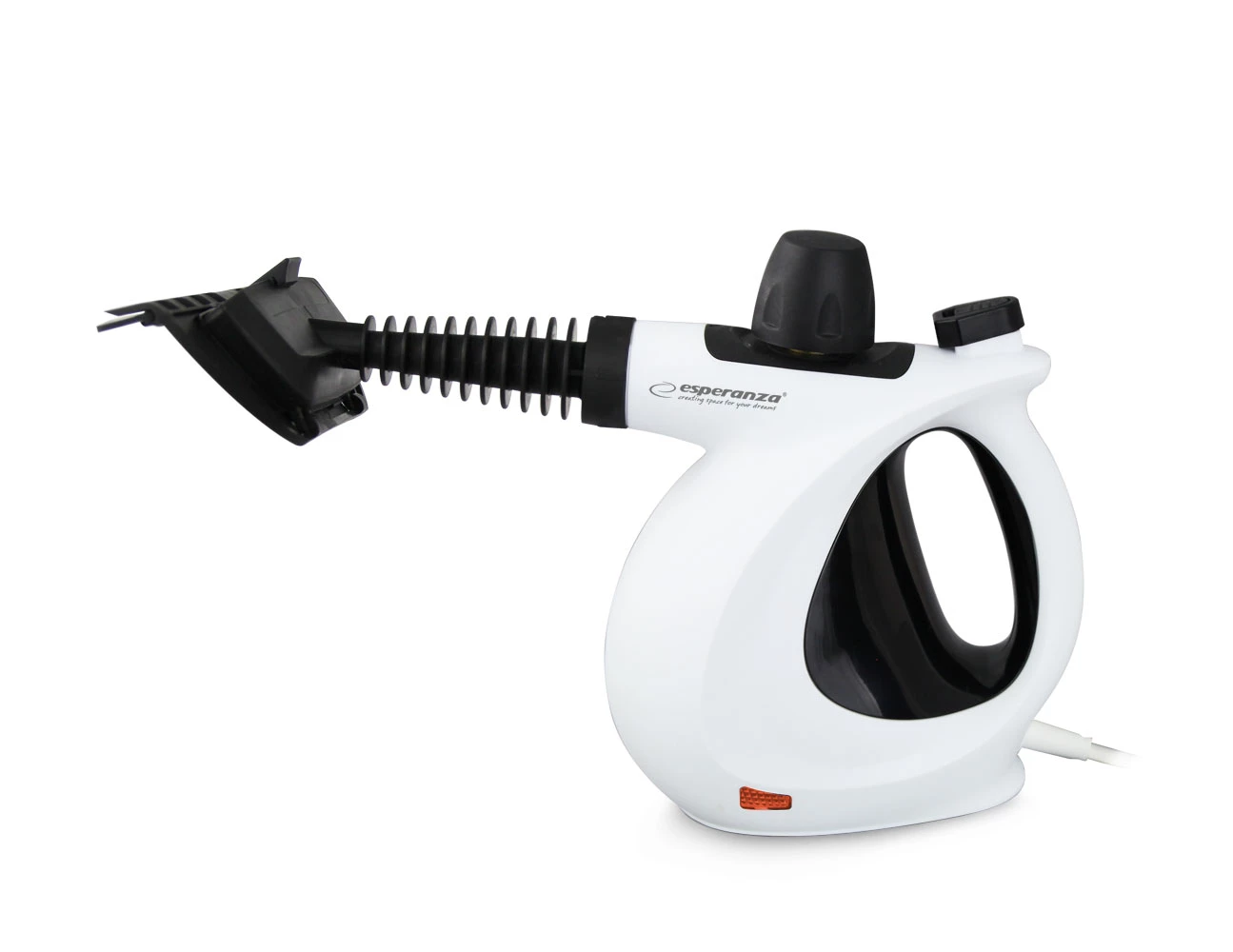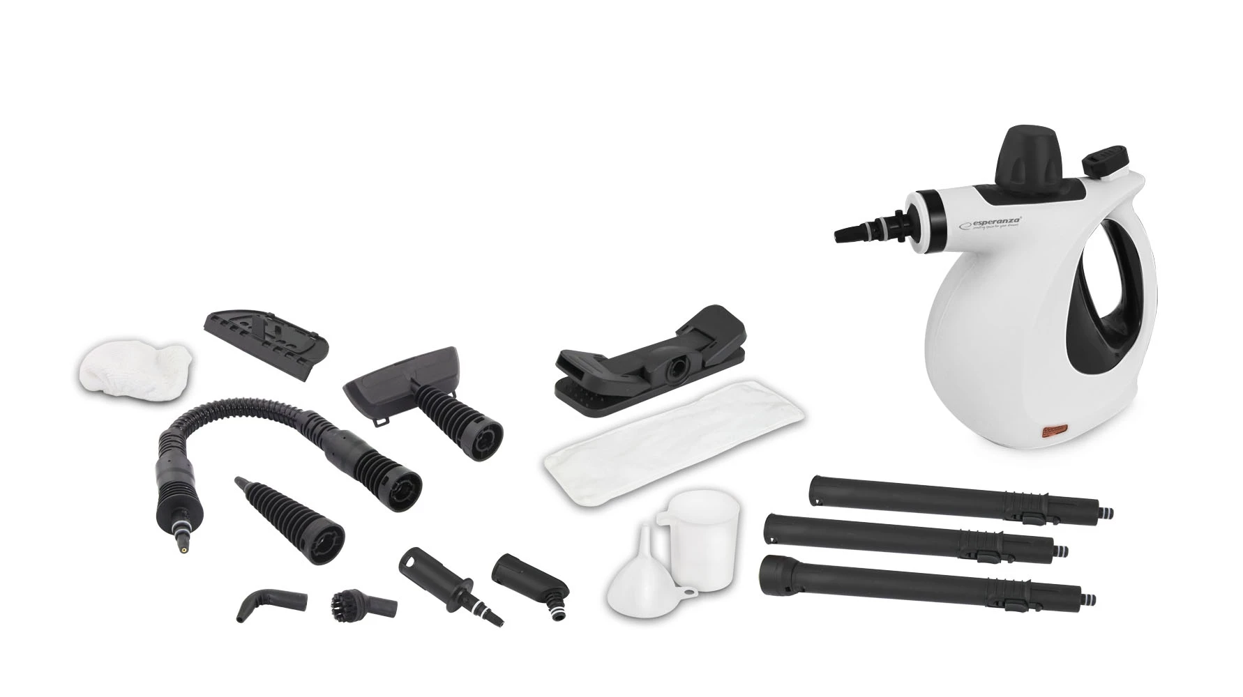 Steam Cleaner Esperanza ASALTO EHS008, Power: 900-1050W, Boiler capacity : 350 ml, Water filling capacity: 250 ml, Operating pressure: max. 3 Pa, Heating time: 3-5 minutes, Continuous steaming flow: 25-40 g/min, Continuous steaming time: 7-10min, Max water temperature: 115 degree, Safety cap with child lock to prevent from scalding, Power cord length: 300cm 3G0.75mm2
