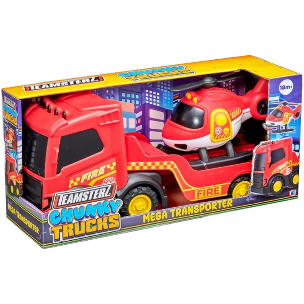 Pornește în misiune de salvare cu transportorul de pompieri Teamsterz cu elicopter – un set de joacă captivant pentru micii eroi! Setul include un camion de pompieri robust și un elicopter de salvare cu elice rotativă manual, care adaugă un element interactiv și mai multă distracție.