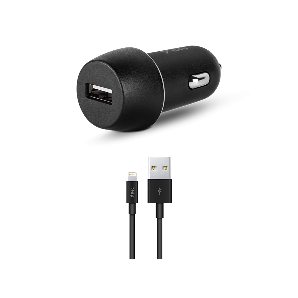 ttec Car Charger USB-A 2.1A with Lightning Cable, Black