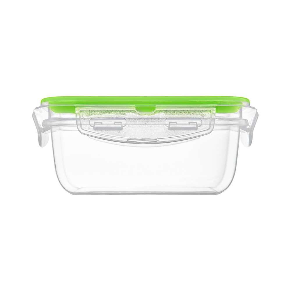 Recipientul poate fi folosit in cuptorul cu microunde fara capac, ceea ce permite incalzirea rapida a preparatelor. De asemenea, este potrivit pentru depozitarea in frigider si congelator, rezistand la temperaturi cuprinse intre -18°C si +95°C. Curatarea este simpla, produsul fiind compatibil cu masina de spalat vase, unde se recomanda plasarea in sertarul superior. Cu un design simplu si functional, in culori transparente cu accente verzi.
