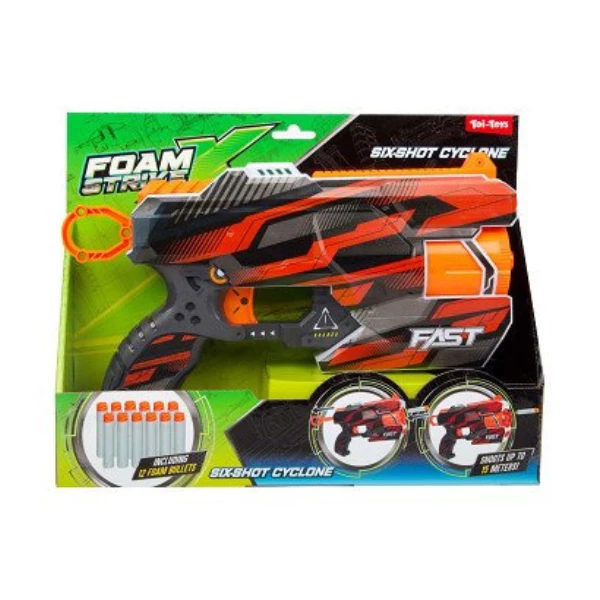 Подарите ребёнку активные и безопасные стрелковые игры!Бластер «Циклон» — это игрушечный пистолет с шестиствольным механизмом, который позволяет стрелять мягкими стрелами одна за другой. В комплекте 12 стрел из мягкого материала, безопасных для детей, чтобы устраивать захватывающие дуэли и развивать меткость.