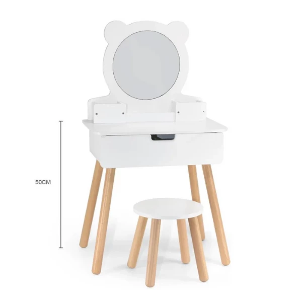 Туалетный столик развивает у детей воображение, позволяя почувствовать себя настоящими принцессами, организовывать игровые сценарии и улучшать социальные навыки. Он способствует развитию моторики, зрительно-моторной координации и ловкости, а также стимулирует творческое мышление и организованность.