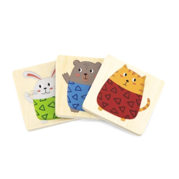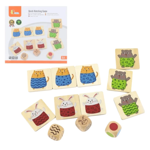 Деревянная игра-угадайка от VIGA — идеальный способ весело провести время с друзьями и семьей. Задача ребенка — бросить выбранное количество кубиков (от 1 до 3) и найти нужное животное с нужным рисунком на футболке и нужного цвета. Игра сочетает обучение с увлекательным игровым процессом и помогает развивать наблюдательность, логику и моторику.