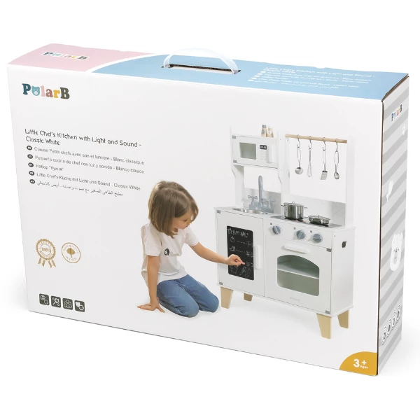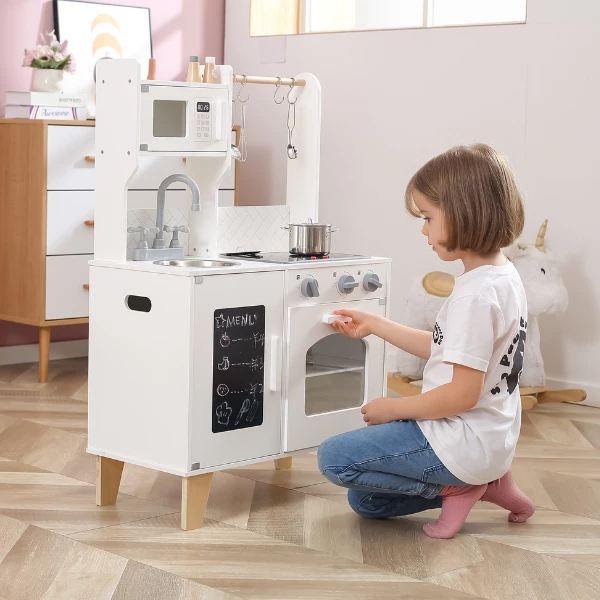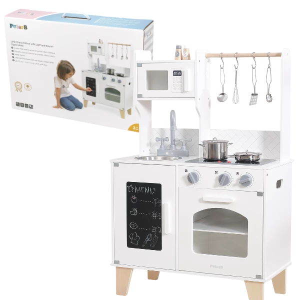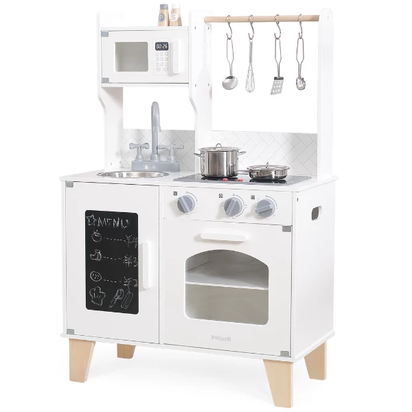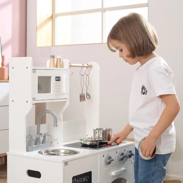 Делать что-то на собственной кухне – особое удовольствие для малышей, которые только начали знакомиться с домашними делами. Они могут, подражая родителям, готовить что-то в игрушечной сковороде или кастрюльке, беспрепятственно пользоваться деревянной микроволновкой, духовкой и плитой. Такие занятия полезны для развития эмоционального интеллекта детей, социальных навыков и уверенности в себе.