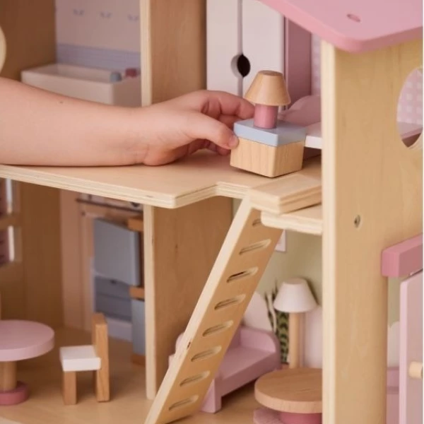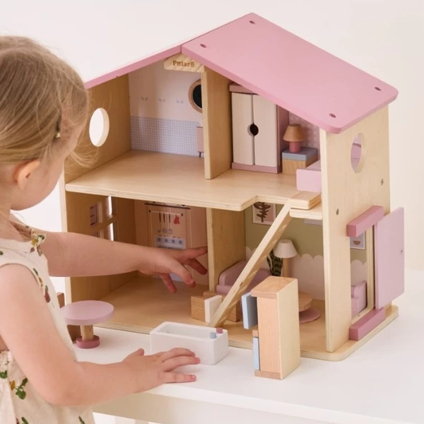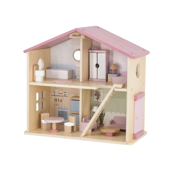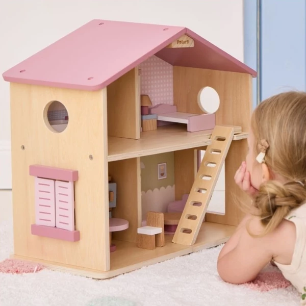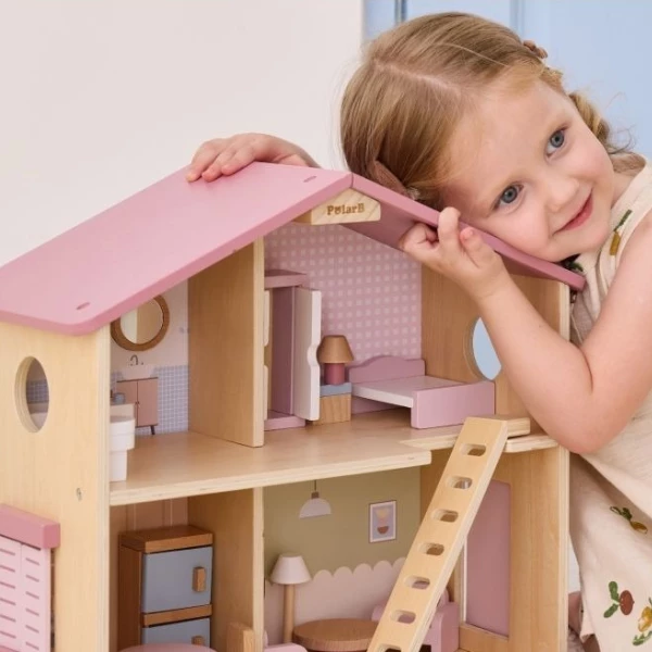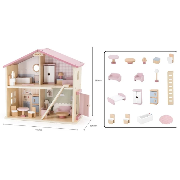 Большой деревянный кукольный домик PolarB от Viga — это мечта каждой девочки! Выполненный из прочного и безопасного дерева в нежных пастельных тонах, он полностью меблирован и готов к игре. В домике есть кухня, уютный салон, ванная и спальня на втором этаже. Набор включает 16 различных предметов мебели и аксессуаров, которые создают реалистичную атмосферу и открывают простор для фантазии.