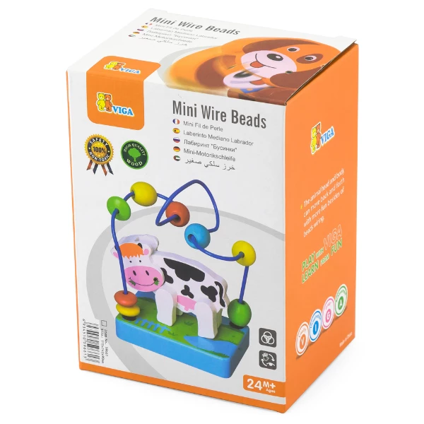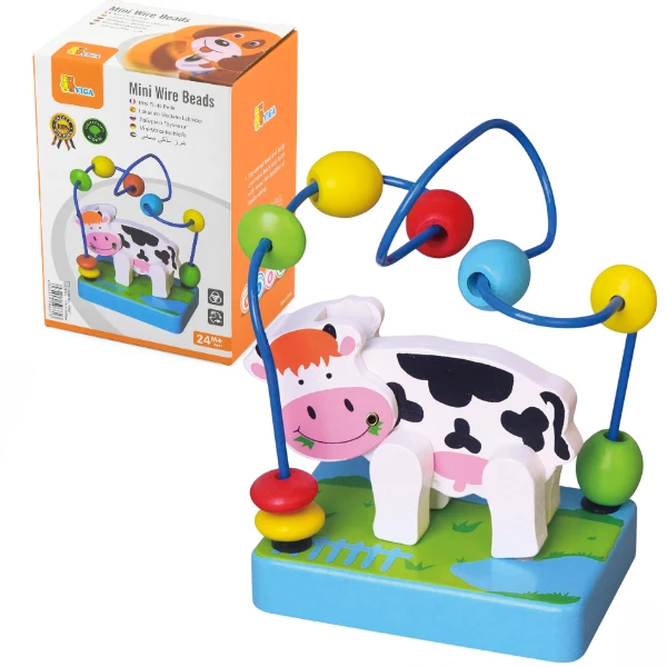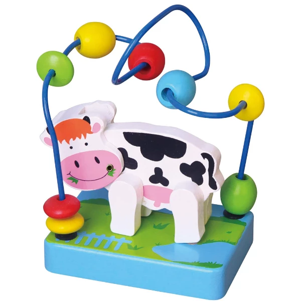 Лабиринт "Коровка" с деревянными бусинами разных форм и цветов, которые вращаются и скользят.  Перемещайте шарики по дорожке, как на американских горках. Узнайте основной счет, считая бусины. Голова и тело животного могут двигаться вперед и назад с большим удовольствием, помимо проводки из бисера.