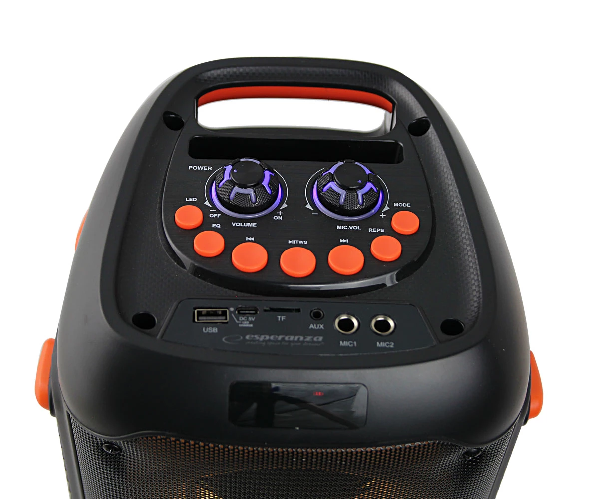Esperanza SINGER EP156, Bluetooth Portable Speaker, power: 20W, Black, RGB LED lighting, Built-in FM Radio, Bluetooth profiles: A2DP, AVRCP, HFP, HSP, Bluetooth version: 5.0, Built in USB port and TFT (microSD) card slot for MP3/MP4 playing, AUX, Micriphone in set, Music playback time: up to 5 h, Operating distance: up to 10m, battery Li-poly: 2400mAh,