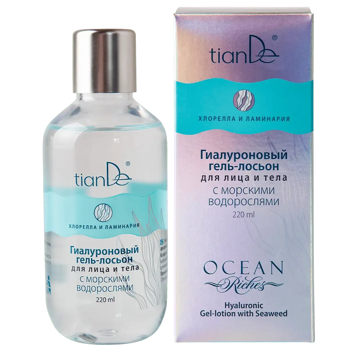 Spa-отпуск для твоей кожиПочувствуй силу океана на своей коже с ревитализирующим уходом, раскрывающим секрет молодости и сияния.Гиалуроновый гель-лосьон для лица и тела с морскими водорослями обеспечивает глубокое увлажнение кожи, восстанавливает её, возвращает тонус, эластичность и здоровый вид.В состав увлажняющего геля для лица и тела включены компоненты, которые погружают тебя в море энергии. Зелёные микроводоросли хлорелла, бурая ламинария, коллаген, природный источник клеточной энергии рибоза, натуральный увлажнитель трегалоза и гиалуроновая кислота, работая вместе, обеспечивают коже многомерное увлажнение и идеальный уход.Гиалуроновый гель-лосьон — это качественный уход для лица и для тела. Он обладает тающей текстурой, мгновенно впитывается, оставляя лишь ощущение комфорта.Применение:Массирующими движениями нанести на чистую кожу лица и тела. Рекомендуется использовать после душа.