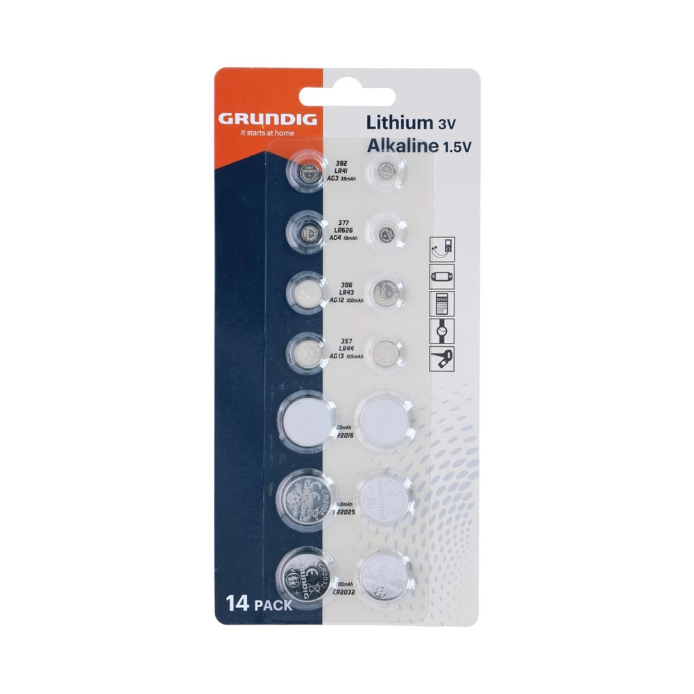 Setul contine 14 baterii individuale, ambalate intr-un blister compact si usor de depozitat, ceea ce permite organizarea eficienta si accesul rapid la tipul de baterie necesar. Formatul mixt include mai multe dimensiuni si modele (AG3, AG4, AG12, AG13, CR2016, CR2025, CR2032), oferind versatilitate si compatibilitate cu o gama extinsa de echipamente electronice.