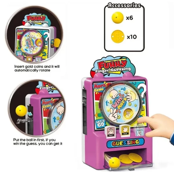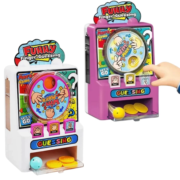 Компактная электронная игра «Камень-Ножницы-Бумага» идеально подходит для настольных игр, семейного досуга и вечеринок. Поместите призовой шарик в один отсек, монеты — в другой, выберите стиль удара и нажмите кнопку. Когда стрелка остановится, если вы выиграли, получите маленький шарик и монеты.