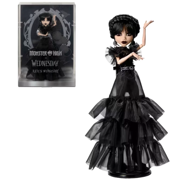 Коллекция Monster High x Wednesday воссоздает атмосферу загадочности и готической элегантности, вдохновленной культовым телесериалом. Эта коллекционная кукла Rave’N Wednesday повторяет образ Уэнсдэй Аддамс из легендарной танцевальной сцены, покорившей миллионы зрителей!
