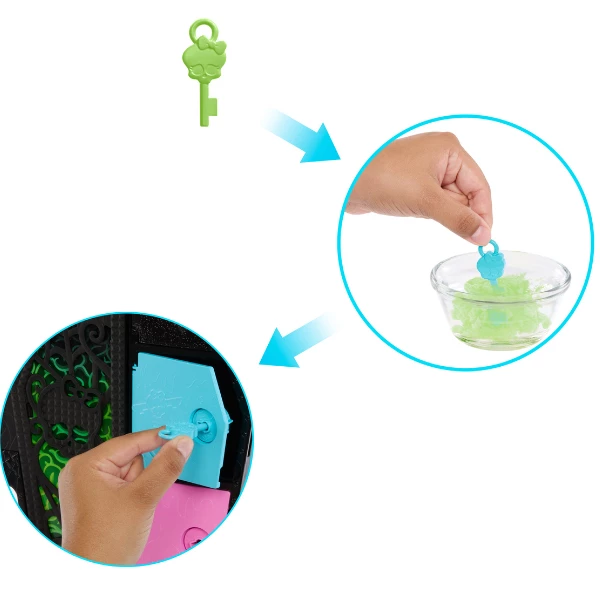 Сможете ли вы сохранить секрет? Возьмите четыре ключа Color Reveal и смойте их загадочное покрытие, а затем откройте четыре соответствующих отсека, чтобы найти спрятанные предметы.Выключите свет, чтобы обнаружить три аксессуара, светящихся в темноте! Смешивайте их с другими включенными предметами стиля, чтобы создавать наряды, которые будут светиться даже в самые темные ночи.