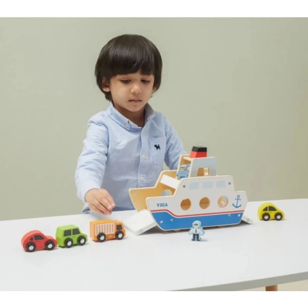 "Деревянный паром" от бренда VIGA — увлекательный игровой набор для маленьких любителей транспорта. Паром позволяет перевозить автомобили, а также включать его в совместные игры с друзьями. Игрушка оснащена опускающимися пандусами и колесами, благодаря которым паром может двигаться, добавляя реалистичности игровому процессу.