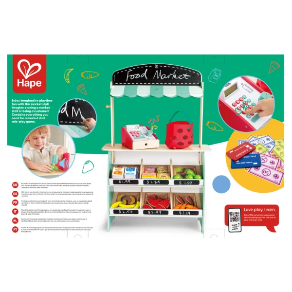 Подарите ребёнку увлекательную ролевую игру с фермерским прилавком! Представьте, что вы управляете своим рынком или покупаете продукты – с этим набором игра становится настоящей имитацией жизни на рынке.