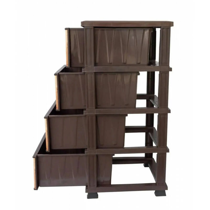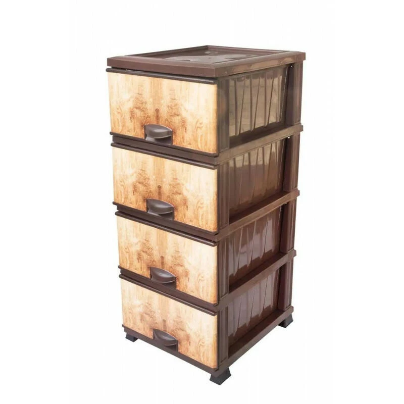 Пластиковый комод с 4 выдвижными ящиками — практичное решение для удобного хранения вещей дома, на кухне, в ванной, прихожей, детской комнате или гараже. Изготовлен из прочного пластика, устойчив к влаге и перепадам температур, поэтому подходит даже для использования на балконе или улице. Ящики легко открываются, а дизайн под дерево гармонично вписывается в любой интерьер. ...
