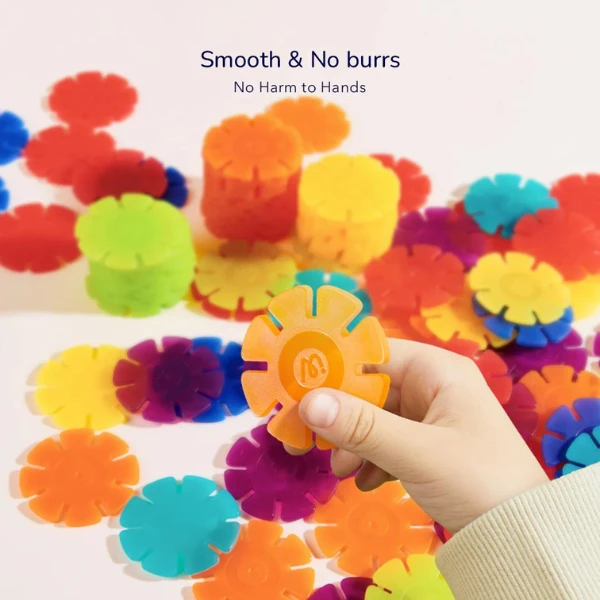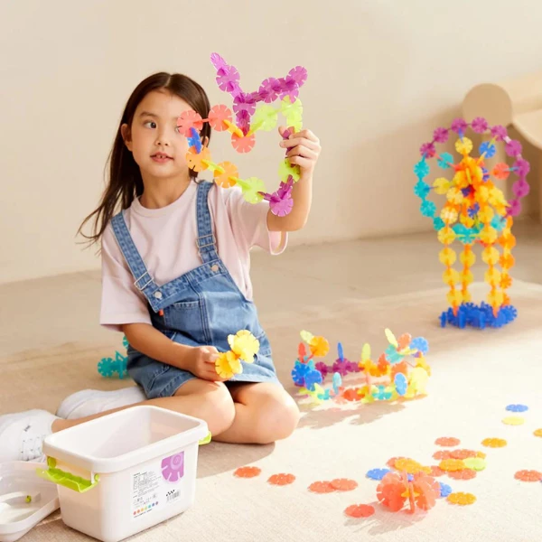 Набор "Цветные снежинки" стимулирует креативность и воображение детей. Эти элементы помогают развивать координацию рук и глаз, улучшая понимание строительных навыков, равновесия и концепций пространства. Патентованный дизайн с канавками предотвращает случайное расцепление деталей. Материал PP, безопасный для кожи, и тщательно обработанная поверхность увеличивают безопасность в испо ...