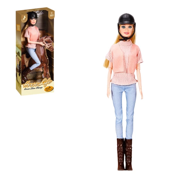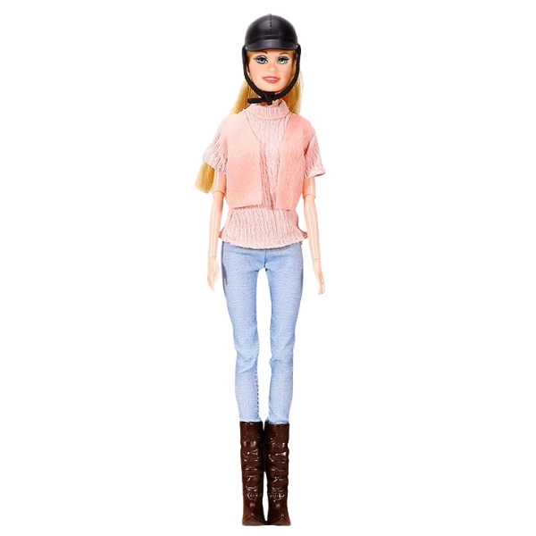 Познакомьтесь с Барби – настоящей спортивной наездницей, которая всегда готова к приключениям! Она одета в стильные джинсы и высокие сапоги, идеально подходящие для верховой езды.