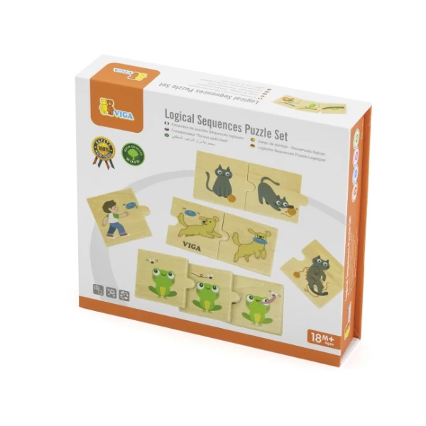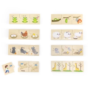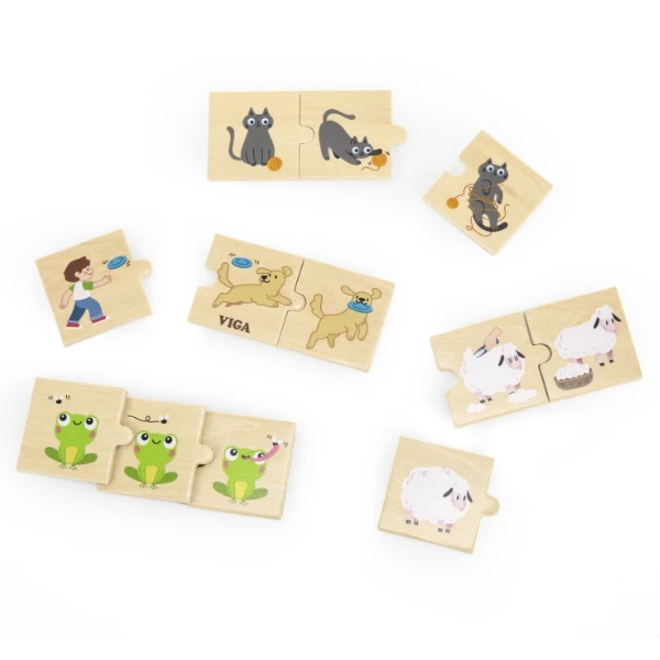 Деревянная головоломка от известного бренда VIGA «Действия животных» — идеальная обучающая игрушка для самых маленьких. Она состоит из 24 цветных плиток, изображающих разные действия животных, такие как апортировка собакой или кормление жирафа. Дети должны сопоставлять элементы, что развивает логику и умение рассказывать истории.