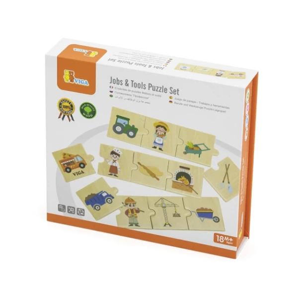 Набор деревянных пазлов «Профессии и инструменты» от бренда VIGA — идеальный выбор для детей от 18 месяцев. Игрушка позволяет учиться через игру, знакомя малышей с цветами и разнообразием профессий.