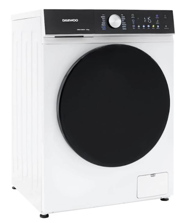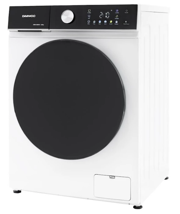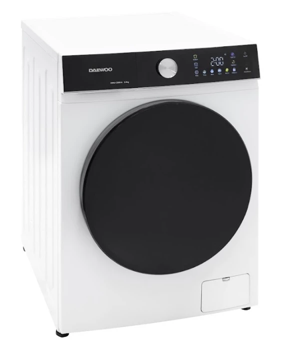 Masina de spalat rufe Daewoo DWD-CS9014, 9 kg / 1400rpm, 60cm, clasa A, motor inverter, Display, Panou negru + usa dubla neagra, 16 program, Alb