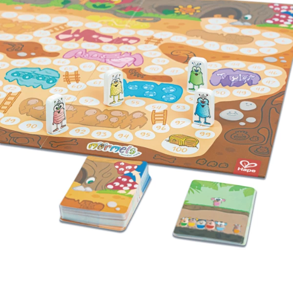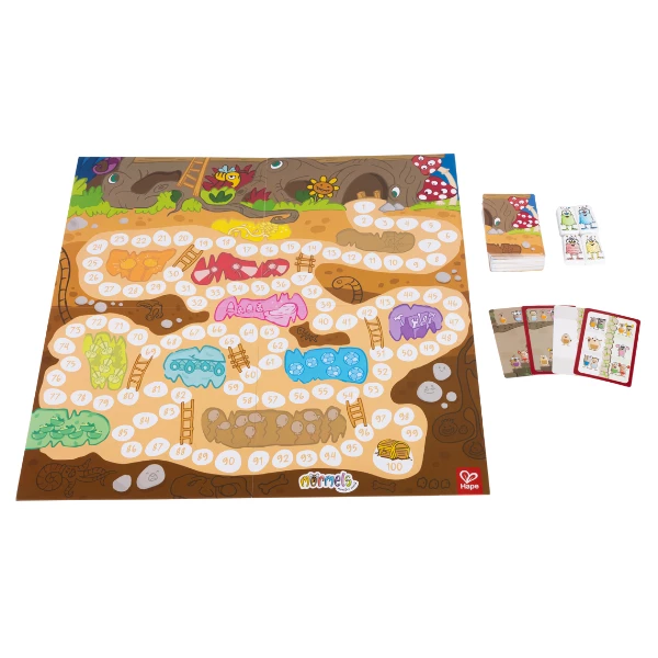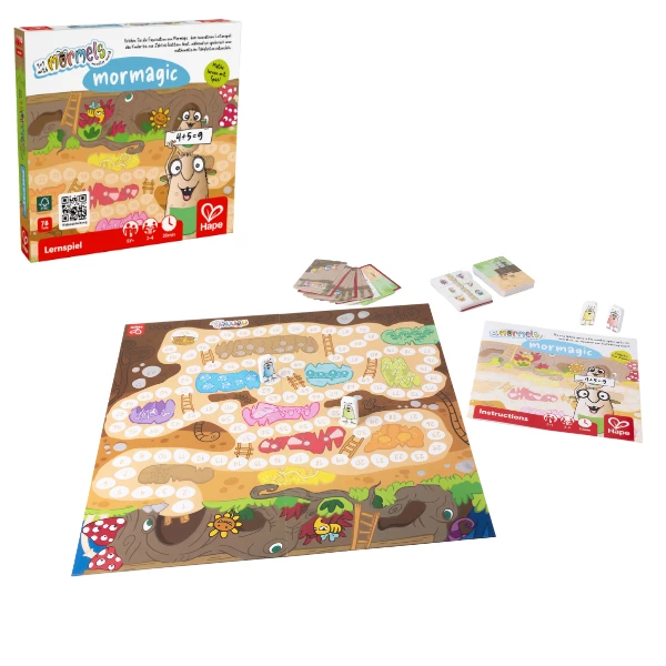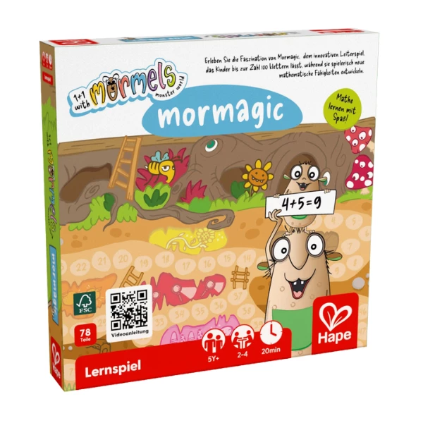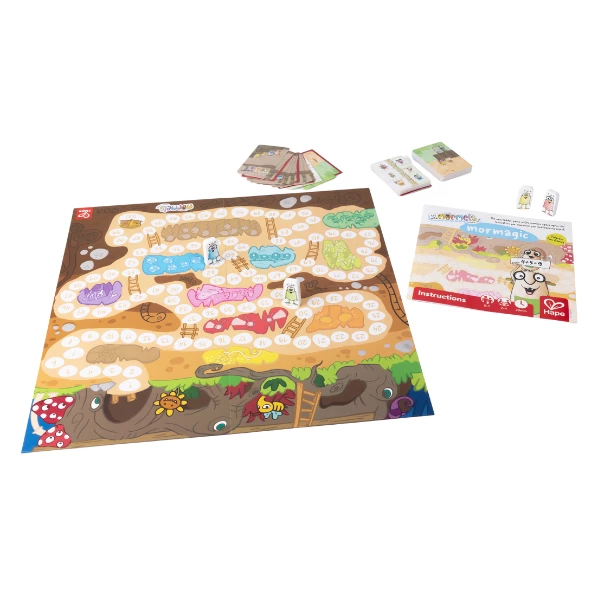 Окунитесь в увлекательный мир маленьких монстров Mormels с игрой Mormagic! Вместо привычных кубиков, игроки продвигаются по игровому полю, используя карты Mormels, чтобы определить, на сколько клеток перемещаться. Счёт, сложение и стратегическое мышление помогут детям достичь сокровищницы за числом 100 и выиграть игру!