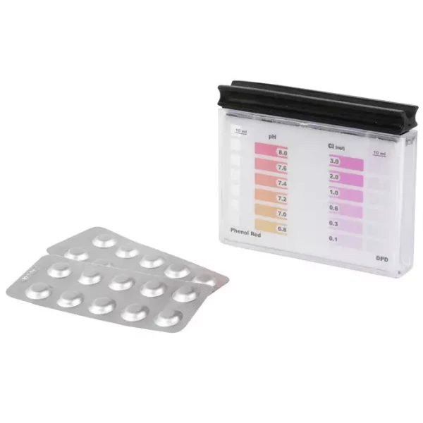 Для быстрого и простого измерения уровня pH (феноловый красный) и свободного хлора (DPD1) вместе с тестовым набором.