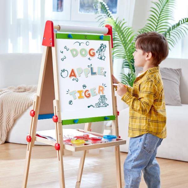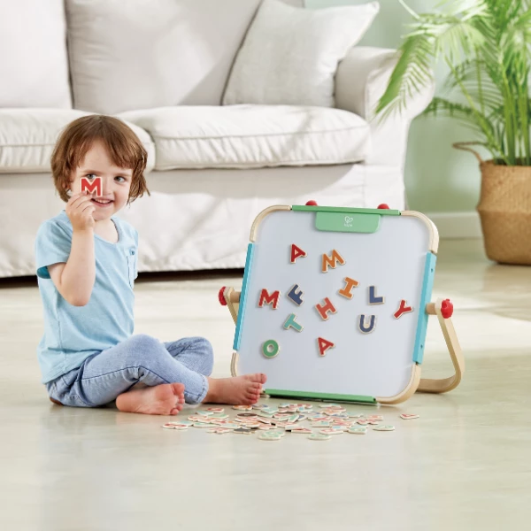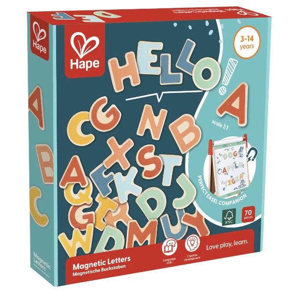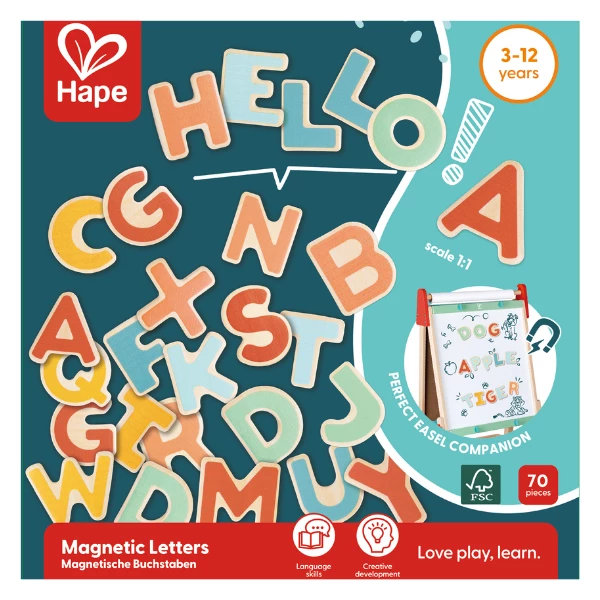 Изучение алфавита становится увлекательным с набором магнитных букв Hape! В комплект входит 70 магнитных букв ярких цветов, идеально подходящих для знакомства с первыми словами и составления коротких предложений. Буквы легко прикрепляются к мольберту Hape, что делает игру ещё более интересной и интерактивной.