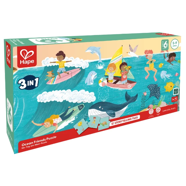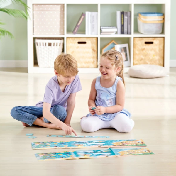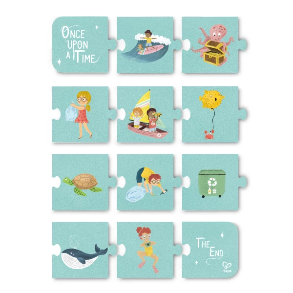 Набор включает 3 пазла (всего 144 детали), 12 карточек для сторителлинга и удобный постер-образец, который можно использовать как подсказку или повесить на стену.