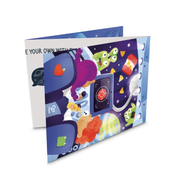 Весёлые инопланетяне, счастливые астронавты и их друзья вдохновляют ребёнка на творческое мышление.