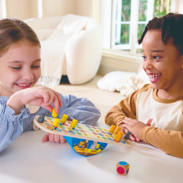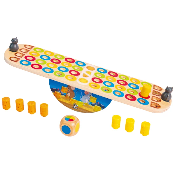 Весёлая игра на баланс, где мышки тихо пробираются с кусочками сыра к своему домику, стараясь не разбудить кошку! Игроки учатся стратегическому планированию, развивают моторику и чувство равновесия.