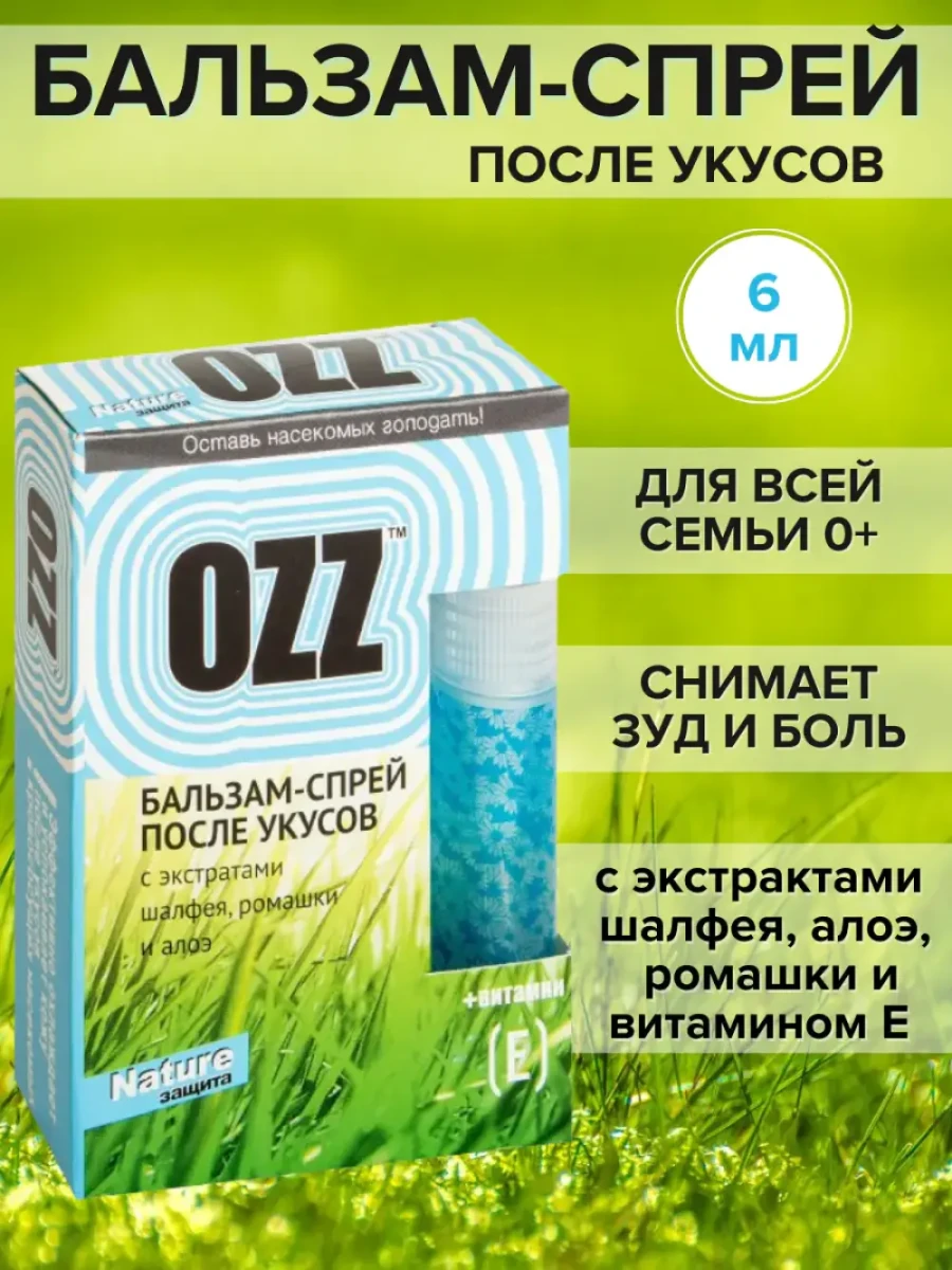 Бальзам-спрей OZZ Nature предназначен для быстрого облегчения зуда и дискомфорта после укусов комаров и других насекомых. Легкая формула с натуральными компонентами успокаивает кожу и способствует быстрому восстановлению.