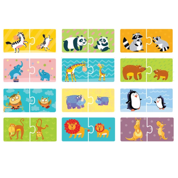 В наборе: 12 пазлов (по 2 элемента в каждом).